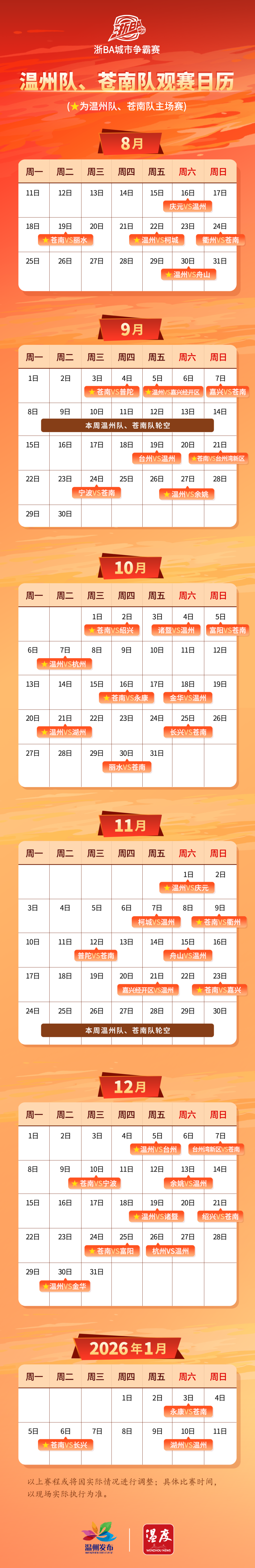温州队、苍南队赛程安排来了!今晚是这场